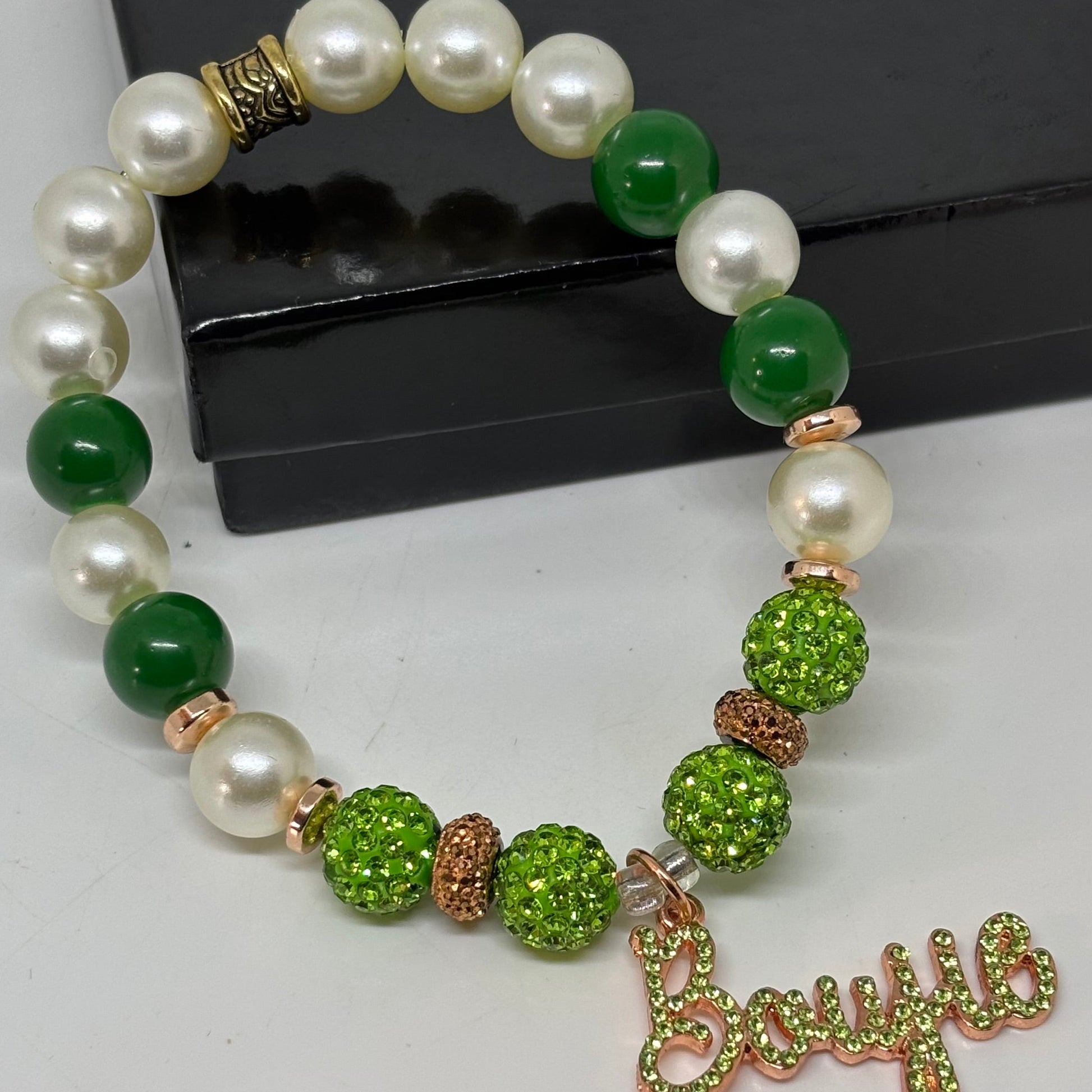 - Stylish beaded bracelet featuring a charm, soft pearls, beads accents with rose gold spacers. Perfect for Valentine’s Day, date nights, or gifting someone special.