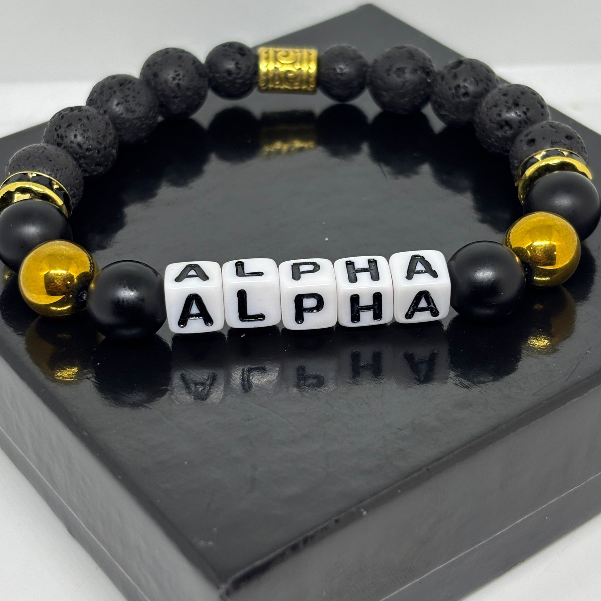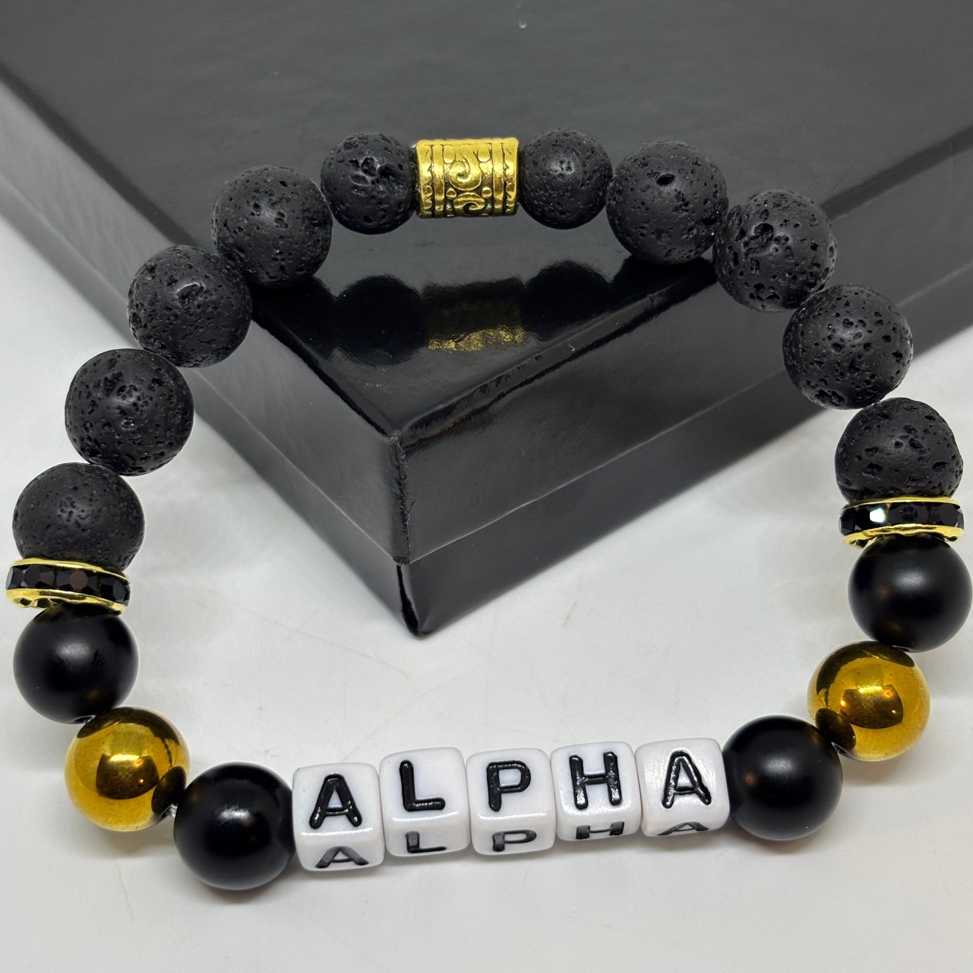 - An inspired brotherhood name beaded bracelet gold, obsidian, and lava stone bracelet symbolizing leadership, power, and purpose.