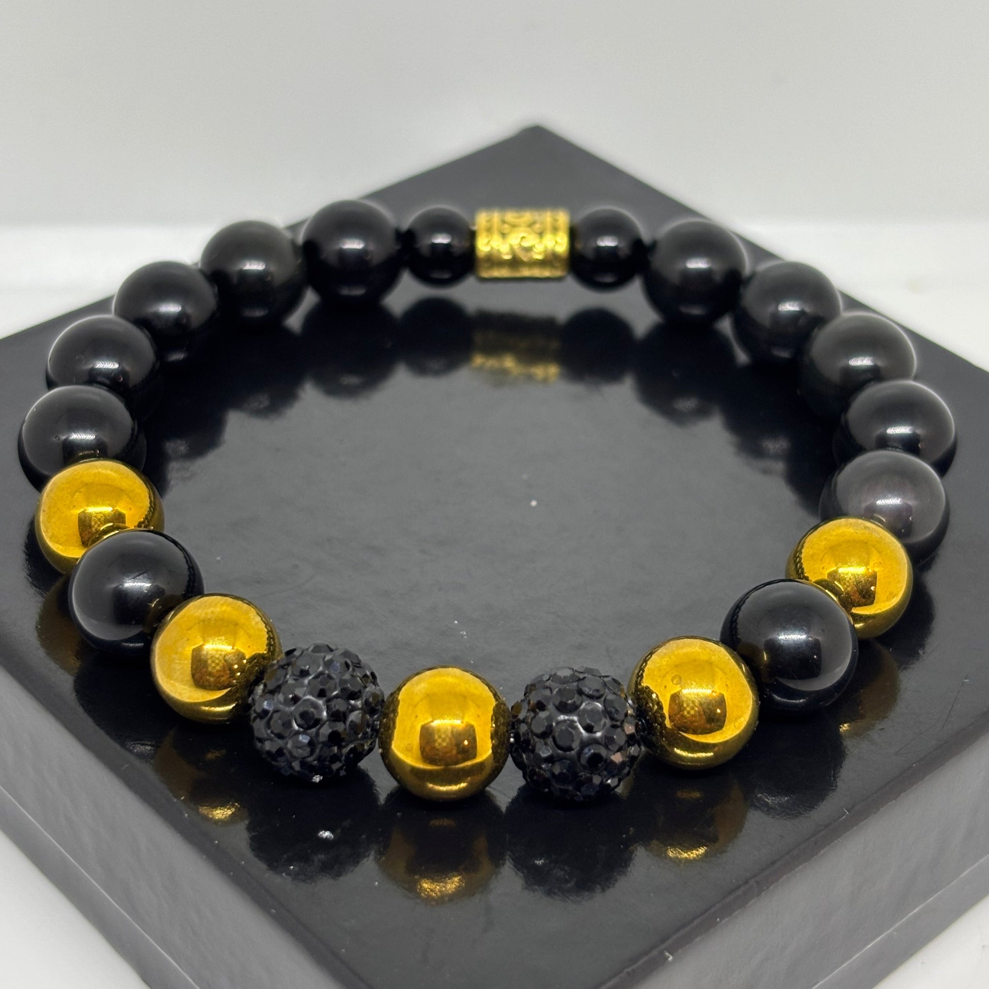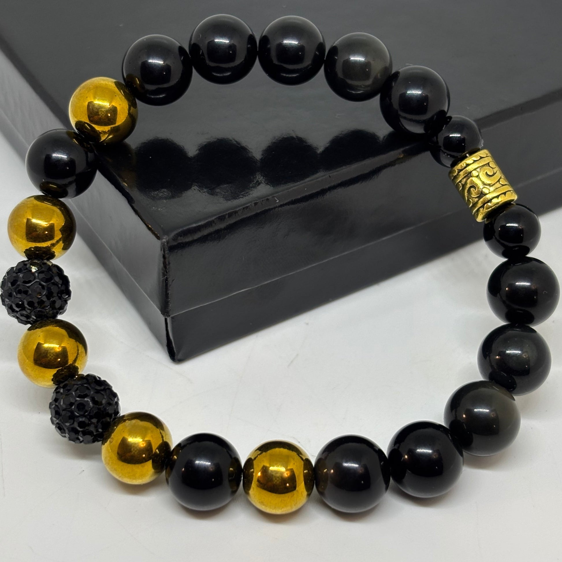- An inspired brotherhood bold fusion of gold, obsidian, and lava stone bracelet symbolizing leadership, power, and purpose.